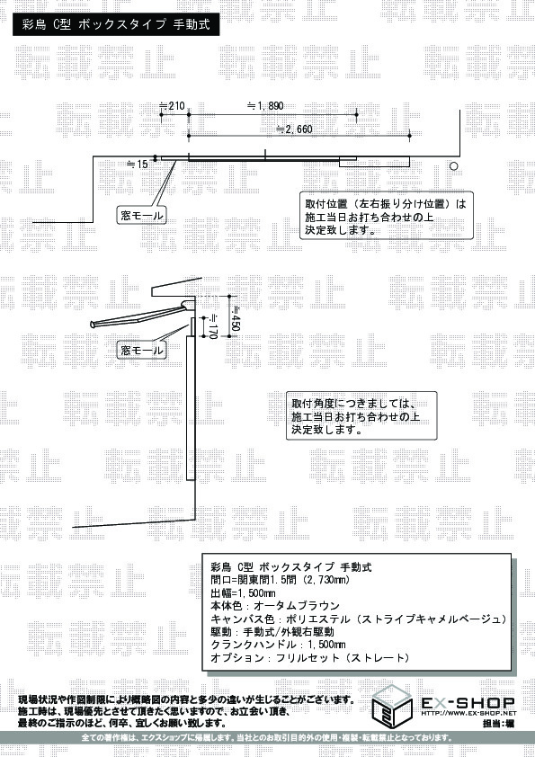 サイズ | 間口 2,730mm 出幅 1,500mm |