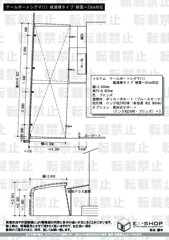 | 屋根高等 | ロング柱28仕様(有効高 約2,800mm) |
