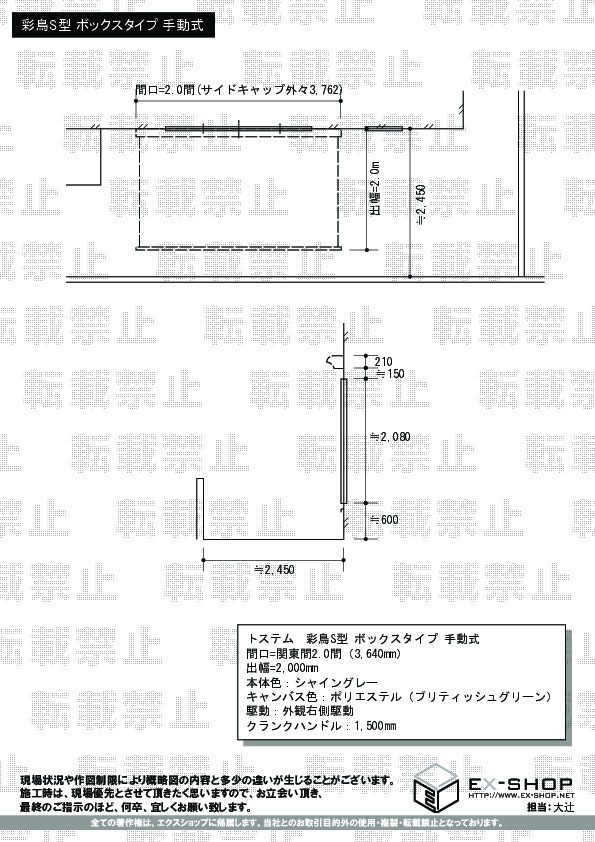 サイズ | 間口 3,640mm 出幅 2,000mm |