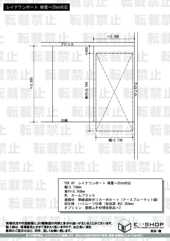 | サイズ | 幅 2,738mm 奥行 5,768mm |