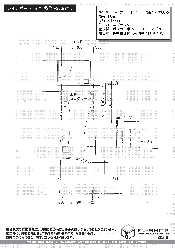 屋根高等 | 標準柱仕様(有効高:1800mm) |