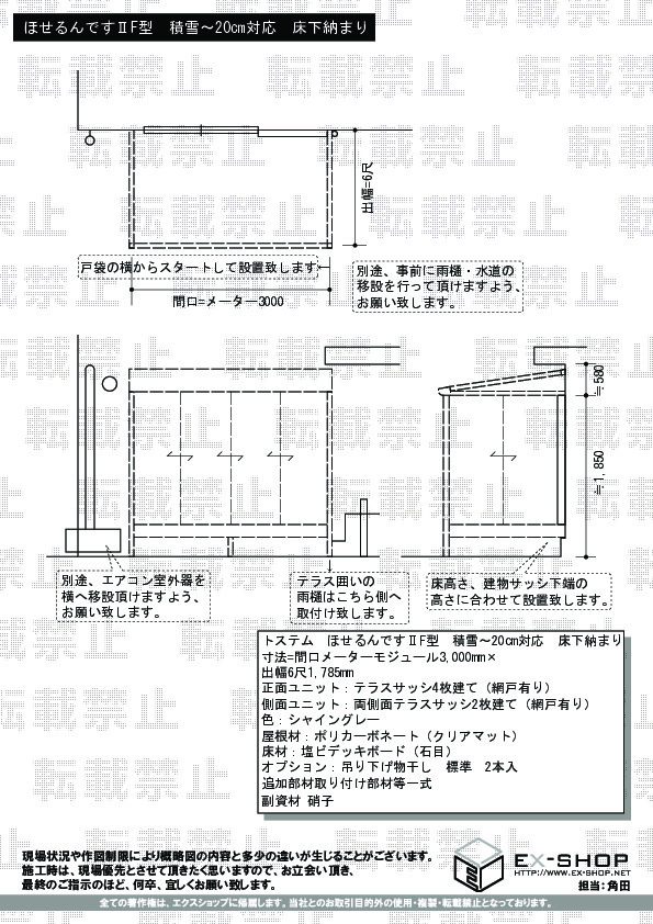 | サイズ | 間口 3,000mm 出幅 1,785mm |