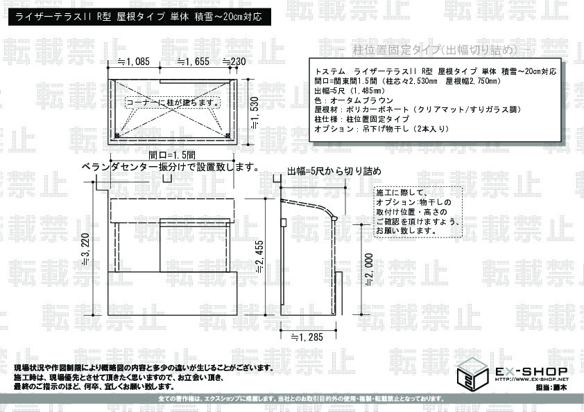 サイズ | 屋根幅 2,750mm 出幅 2,750mm |