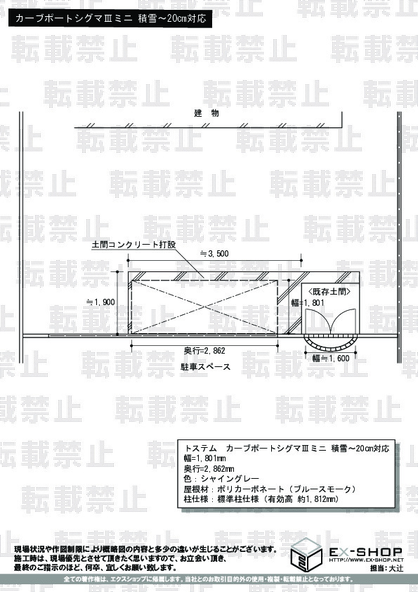 | 屋根高等 | 標準柱仕様(有効高:1800mm) |