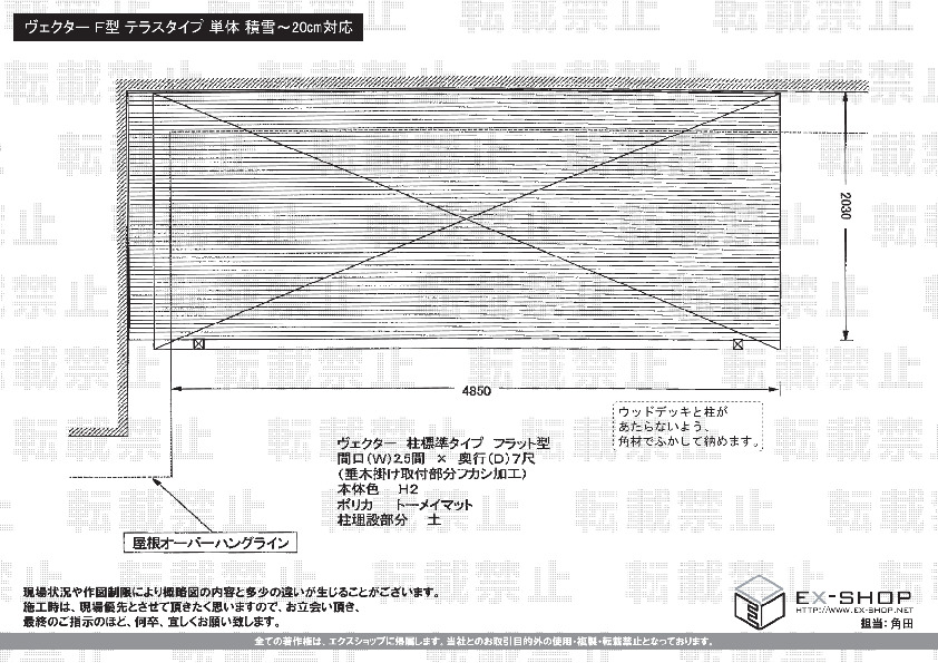 | サイズ | 屋根幅 4,580mm 出幅 2,370mm |