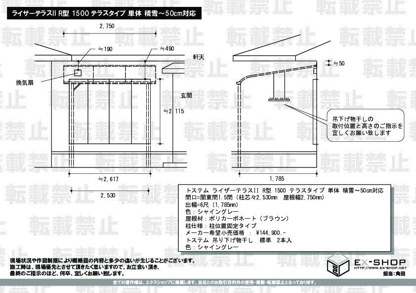 サイズ | 屋根幅 2,750mm 出幅 1,785mm |