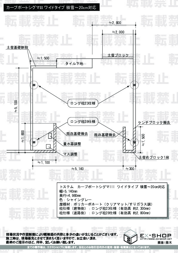 屋根高等 | ロング柱23仕様(有効高 約2,300mm) |