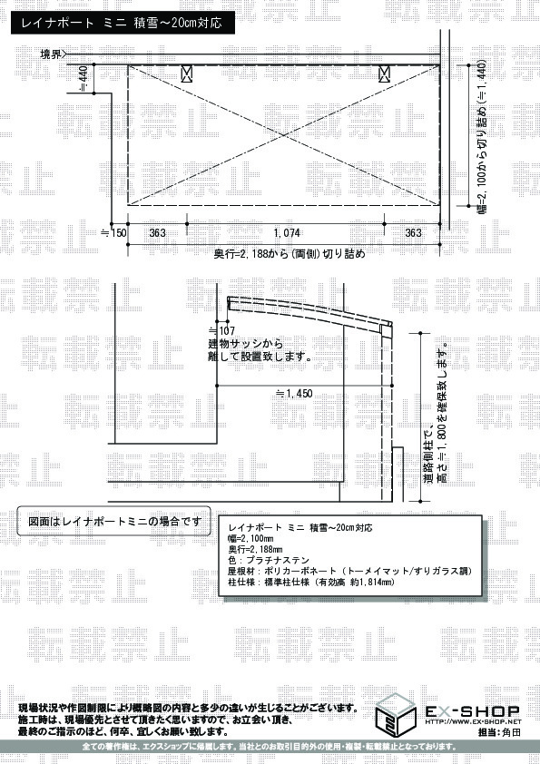 | 屋根材等 | ポリカーボネート(クリアマット/すりガラス調) |