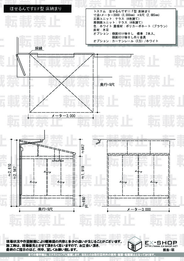 | サイズ | 間口 3,000mm 出幅 2,685mm |