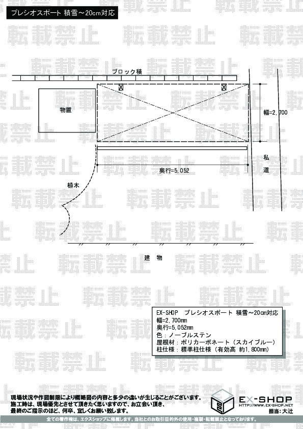 | サイズ | 幅 2,700mm 奥行 5,052mm |