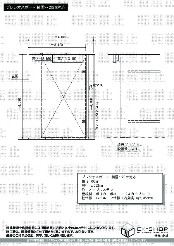 | 屋根材等 | ポリカーボネート(スカイブルー) |