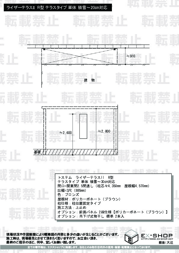 サイズ | 屋根幅 4,570mm 出幅 885mm |