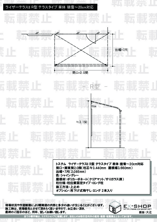 サイズ | 屋根幅 3,660mm 出幅 2,085mm |
