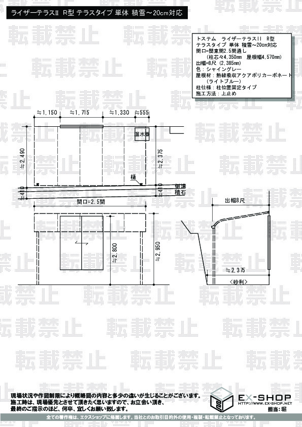 サイズ | 屋根幅 4,570mm 出幅 2,385mm |
