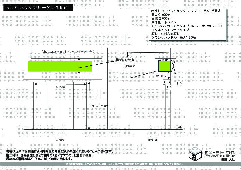 | サイズ | 間口 3,000mm 出幅 2,000mm |