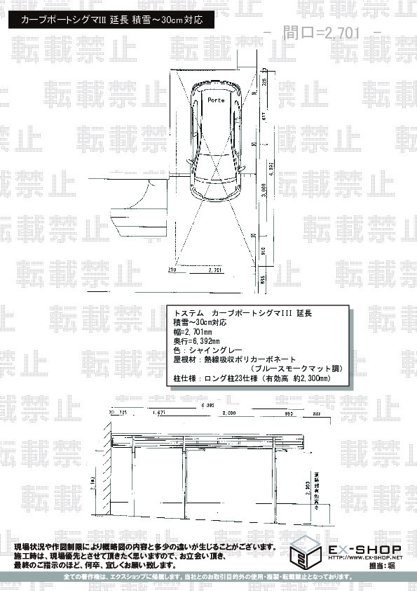 サイズ | 幅 2,701mm 奥行 6,392mm |