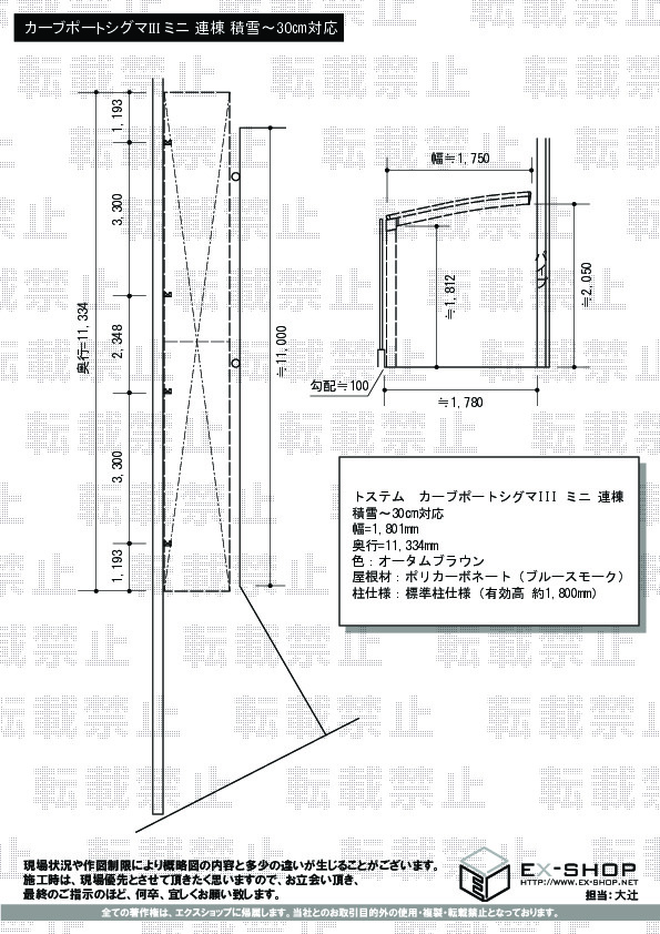 | 屋根高等 | 標準柱仕様(有効高 約1,800mm) |
