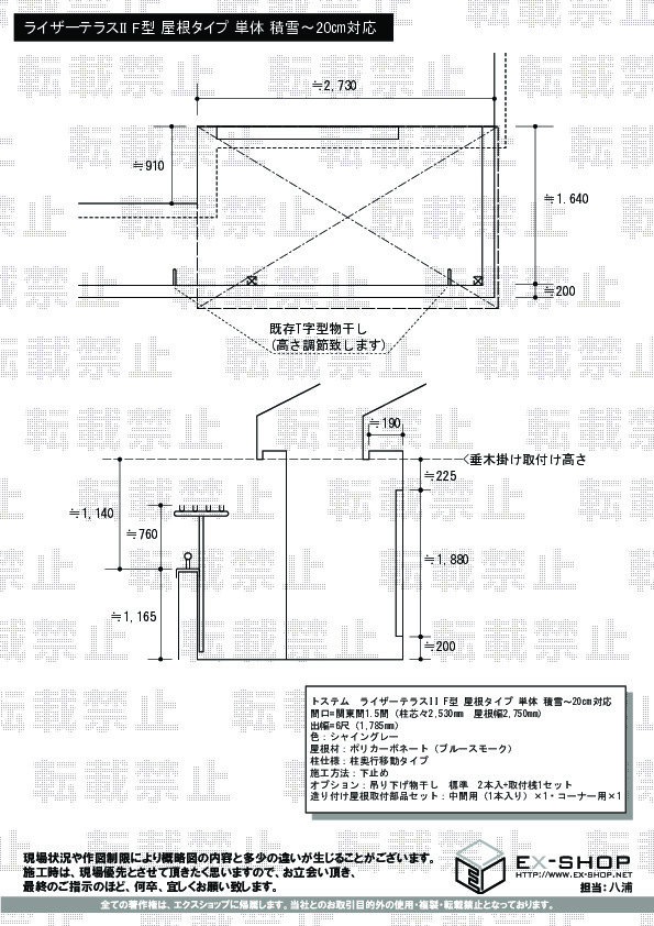 | サイズ | 屋根幅 2,750mm 出幅 1,785mm |