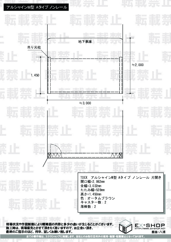 TOEX ワイドオーバードアR1型 ハイルーフ電動タイプ 5400x1000