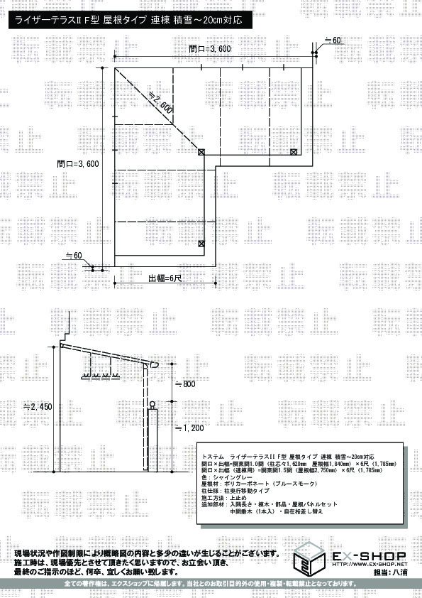 サイズ | 屋根幅 1,840mm 出幅 1,785mm |