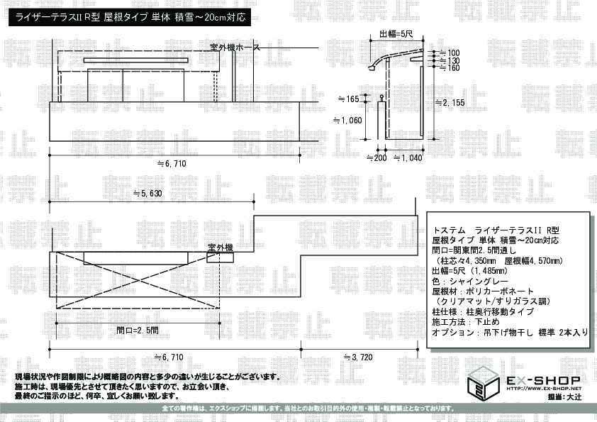 サイズ | 屋根幅 4,570mm 出幅 1,485mm |