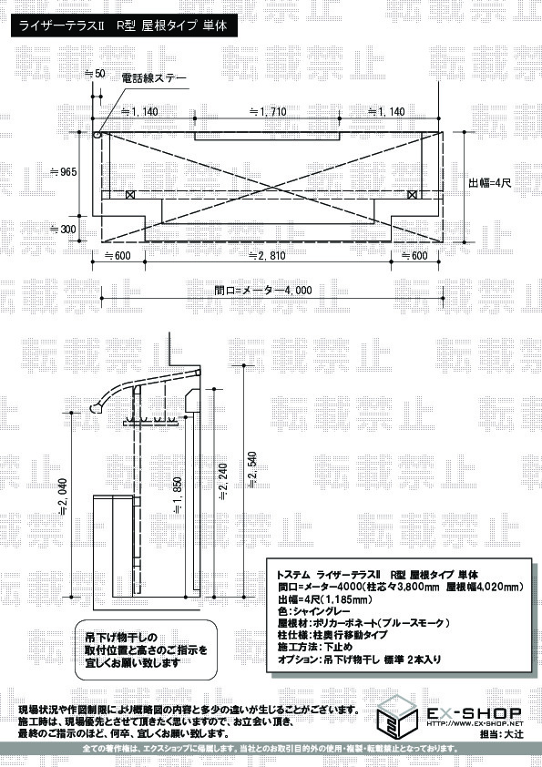 サイズ | 屋根幅 4,020mm 出幅 1,185mm |