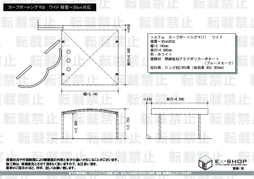 屋根高等 | ロング柱23仕様(有効高 約2,300mm) |