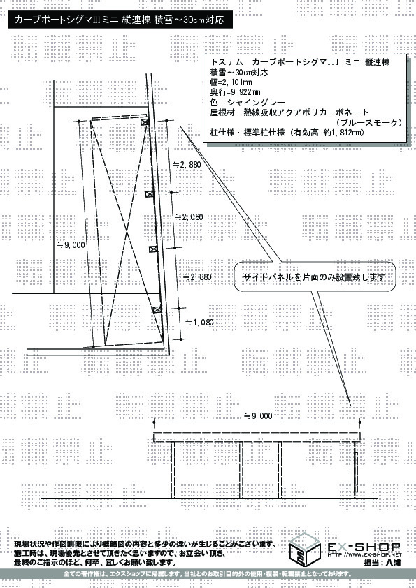 この度は、カーブポートシグマIII ミニ 縦連棟の施工をご依頼頂きまして、誠に有り難うございます。早速ご利用頂いておりますこと、大変嬉しく存じます。現場調査の際に、担当者に至らないところがあり、誠に申し訳ございませんでした。今後も絶えず企業努力を続け、更にお客様にご満足頂けるサービスを目指すよう、努めて参ります。また機会がございましたら、是非エクスショップにご用命くださいますよう、宜しくお願い致します。