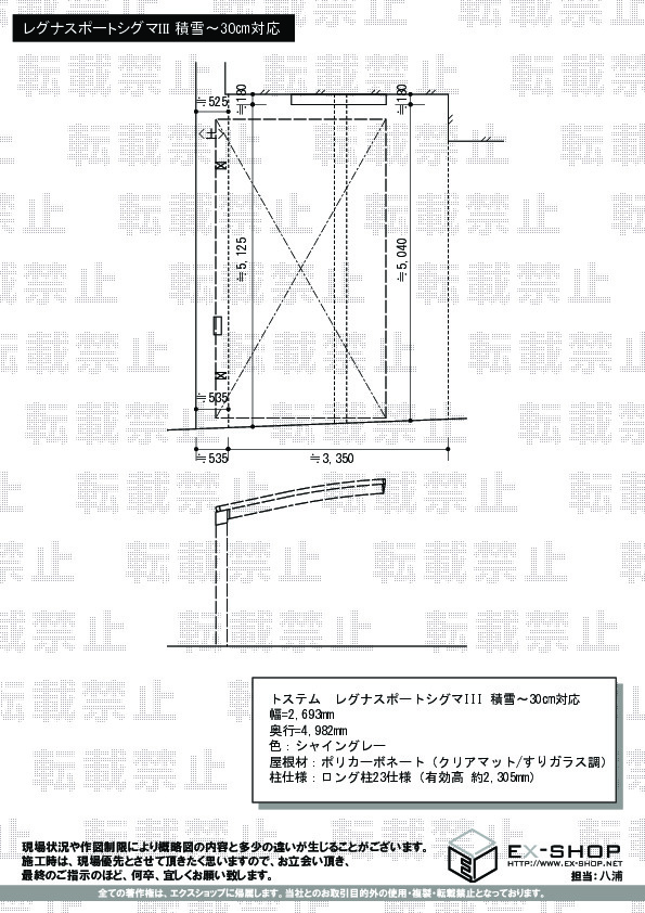 | 屋根高等 | ロング柱23仕様(有効高 約2,305mm) |