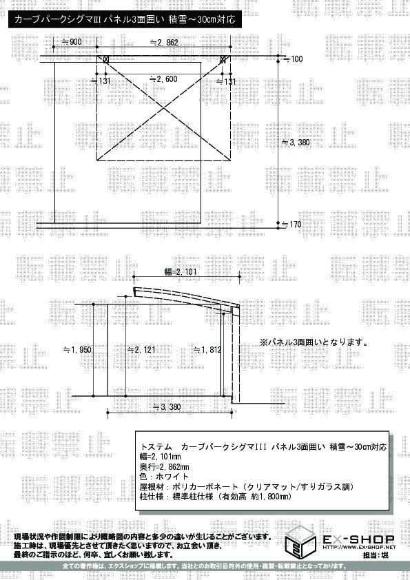 | 屋根材等 | ポリカーボネート(クリアマット/すりガラス調) |