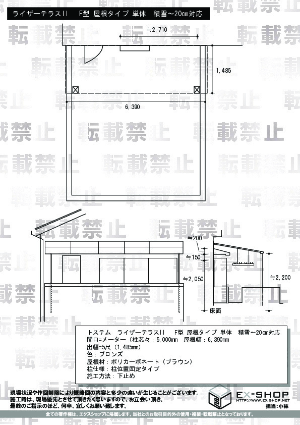 | サイズ | 屋根幅 6,390mm 出幅 1,785mm |