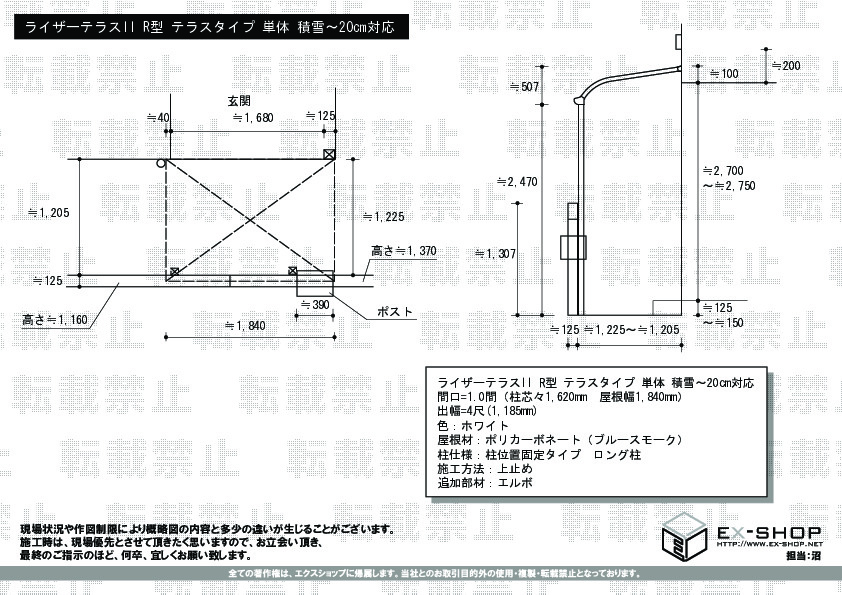 | サイズ | 屋根幅 1,840mm 出幅 1,185mm |