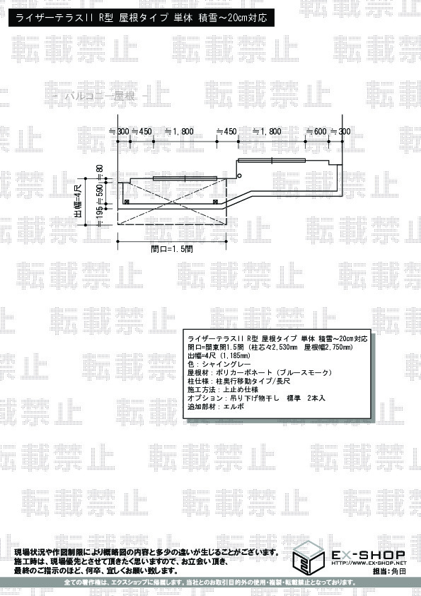 サイズ | 屋根幅 2,750mm 出幅 1,185mm |