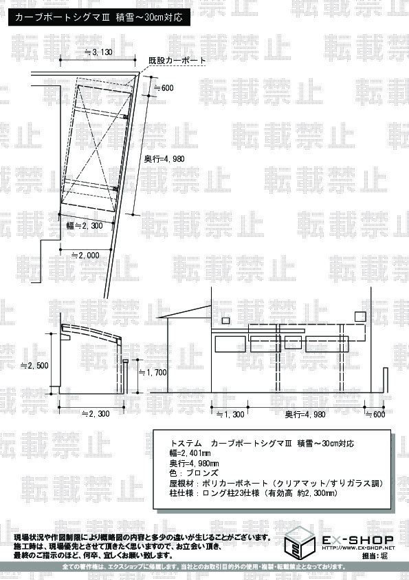 | 屋根材等 | ポリカーボネート(クリアマット/すりガラス調) |