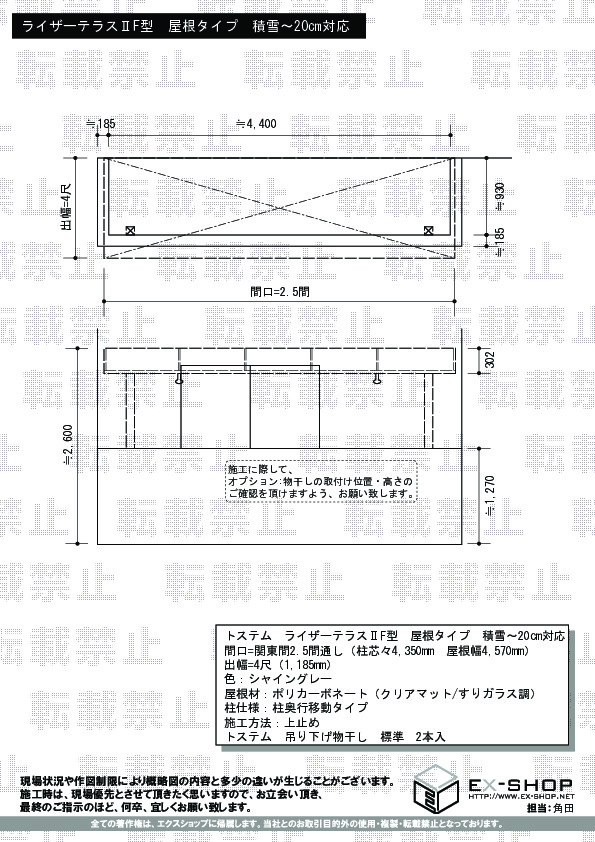サイズ | 屋根幅 4,570mm 出幅 1,185mm |