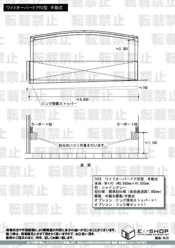 TOEX ワイドオーバードアR1型 ハイルーフ電動タイプ 5400x1000
