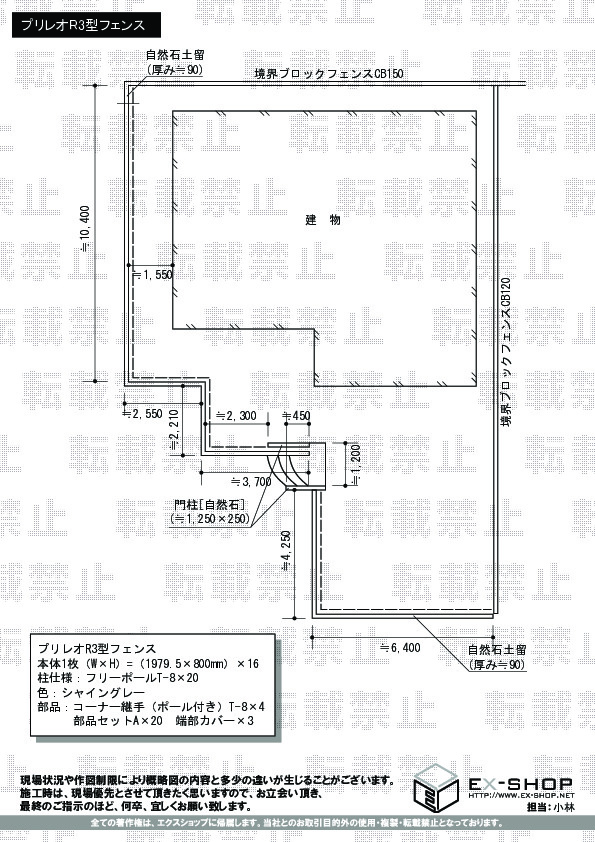 施工店との協力により、お客様のご要望を十分お聞きすることができ、ご満足のいく施工内容となりましたこと、私どもにとりましても自信となりました。担当致しました施工士もご期待にお応えすることができ、大変喜んでおります。プリレオR3型フェンスは、シンプルな横桟が特徴ですが、デザイン性・耐久性に優れ、美しい仕上がりに見とれてしまいました。今後も、常に、お客様のご希望にかなった完成を目指し、努力して参ります。また機会がございましたら、ぜひエクスショップをご利用頂けますよう、宜しくお願い致します。