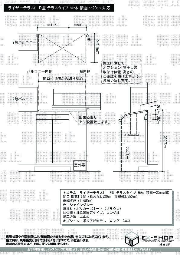 サイズ | 屋根幅 2,750mm 出幅 1,485mm |