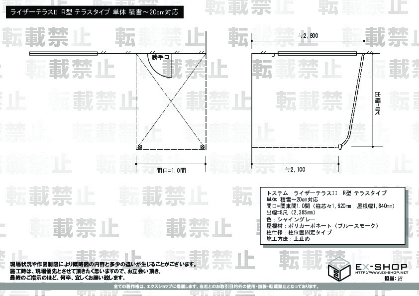 サイズ | 屋根幅 1,840mm 出幅 2,385mm |