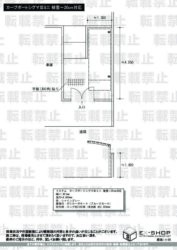 | 屋根高等 | ロング柱23仕様(有効高 約2,300mm) |