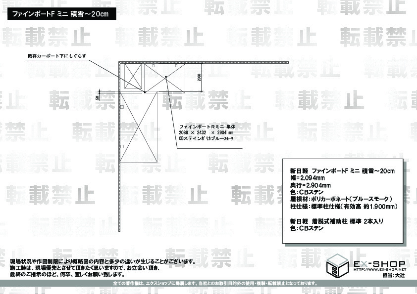 屋根高等 | 標準柱仕様(有効高 約1,900mm) |