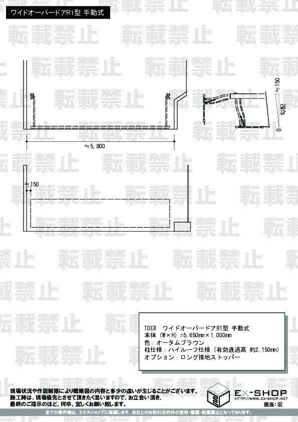 TOEX ワイドオーバードアR1型 ハイルーフ電動タイプ 5400x1000