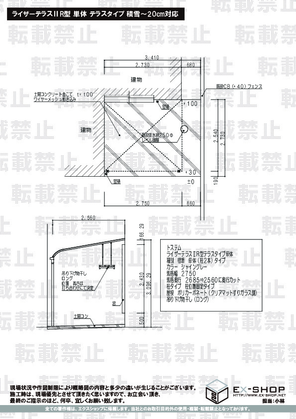 | サイズ | 屋根幅 2,750mm 出幅 2,685mm |