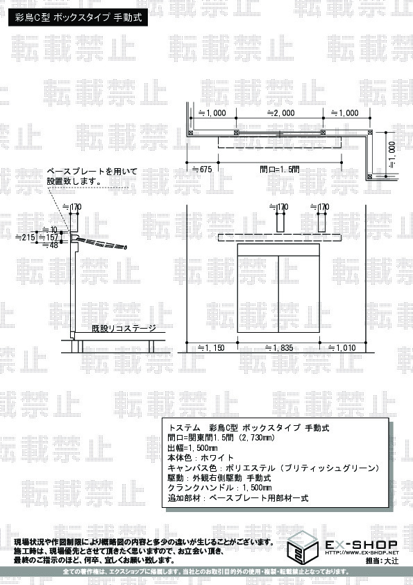 サイズ | 間口 2,730mm 出幅 1,500mm |