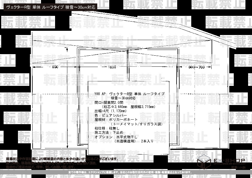 | サイズ | 屋根幅 3,715mm 出幅 1,170mm |