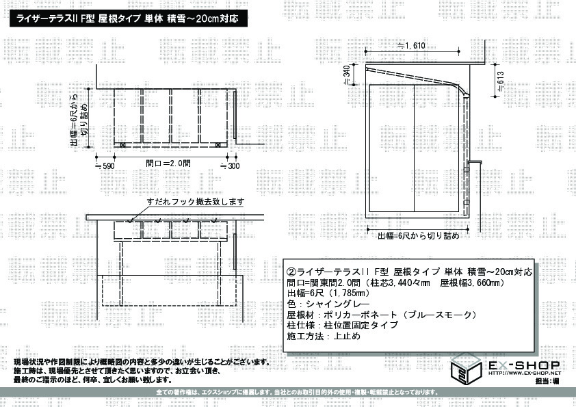 | サイズ | 屋根幅 3,660mm 出幅 1,785mm |