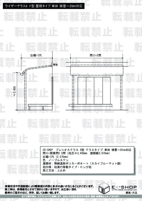 サイズ | 屋根幅 3,670mm 出幅 2,070mm |
