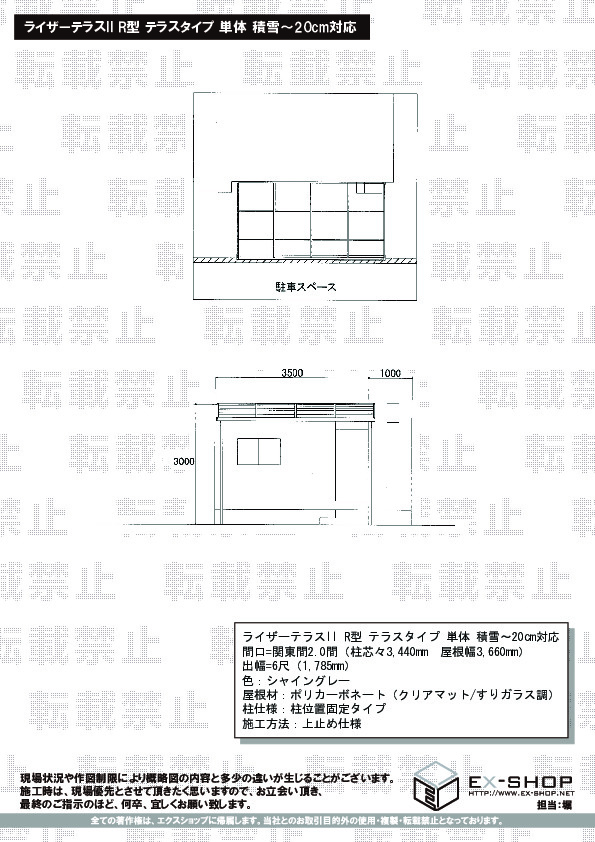 サイズ | 屋根幅 3,660mm 出幅 1,785mm |