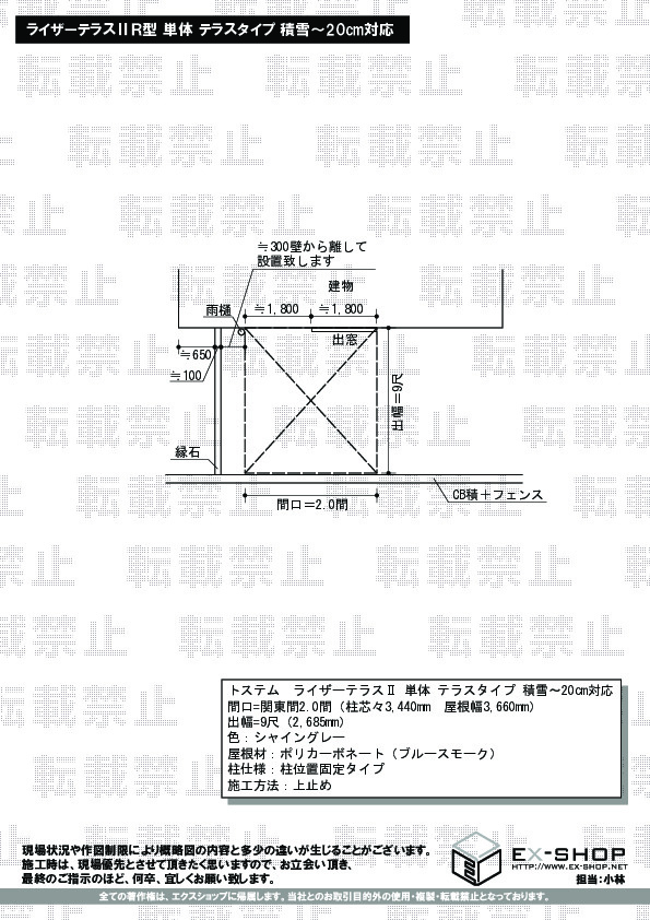 サイズ | 屋根幅 3,660mm 出幅 2,685mm |