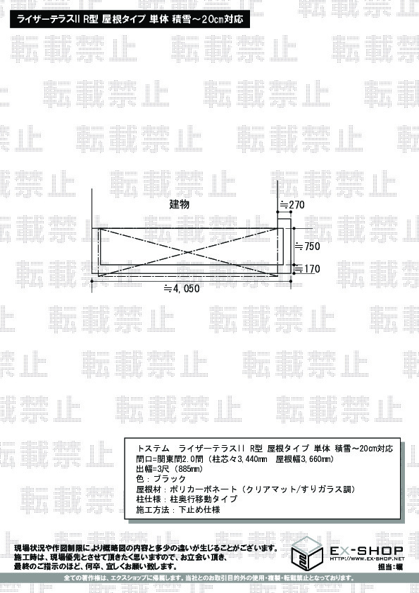 サイズ | 屋根幅 3,660mm 出幅 885mm |